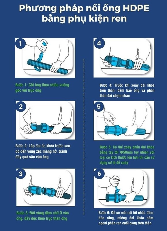 Các bước nối ống HDPE bằng phụ kiện ren HDPE