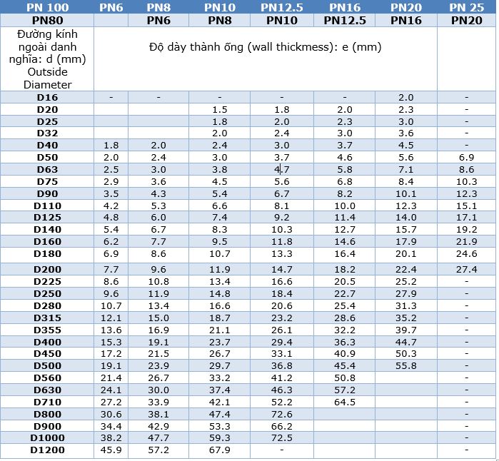Kích thước ống nhựa phổ biến hiện nay